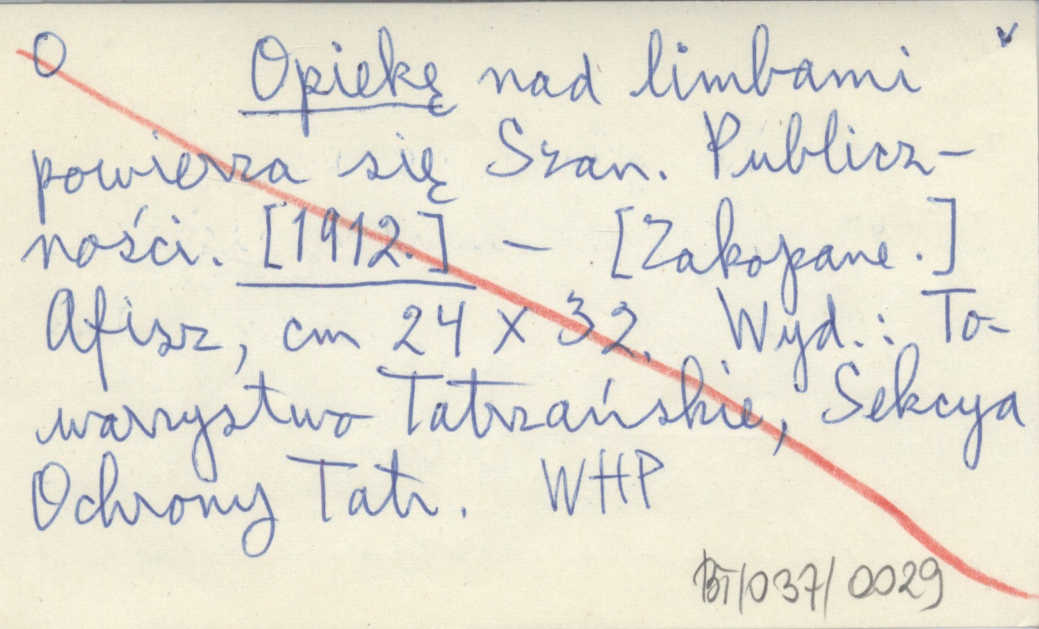 Towarzystwo Tatrzańskie, Sekcya Ochrony Tatr, [Zakopane] , 24x32 cm. Afisz.
