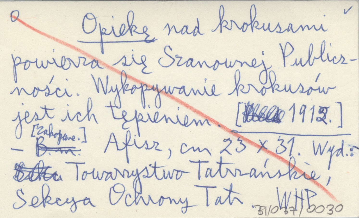 Opiekę nad krokusami powierza się Szanownej Publiczności. Wykopywanie krokusów jest ich tępieniem. [1912]