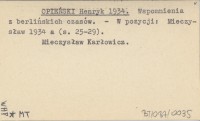 OPIEŃSKI Henryk 1934 Wspomnienia z berlińskich czasów.