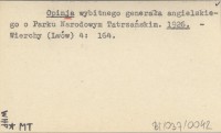 Opinja wybitnego generała angielskiego o Parku Narodowym Tatrzańskim. 1926