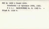 Pamiętnik Towarzystwa Tatrzańskiego, 8: 1-8. Też odbitka. Jest to pierwodruk z rękopisu nr 2673 Biblioteki Jagiellońskiej w Krakowie, z dodaniem adnotacji Kopernickiego. Pozycja ta jest częściowo podobna ale nie identyczna z: HROSIEŃSKI M. 1650 i Trakt 1849. Przedruki: Opisanie 1899, 1903. REC: RADZIKOWSKI S. E. 1905 b. POLAK K. 1952 b. Opisanie 1899, 1903