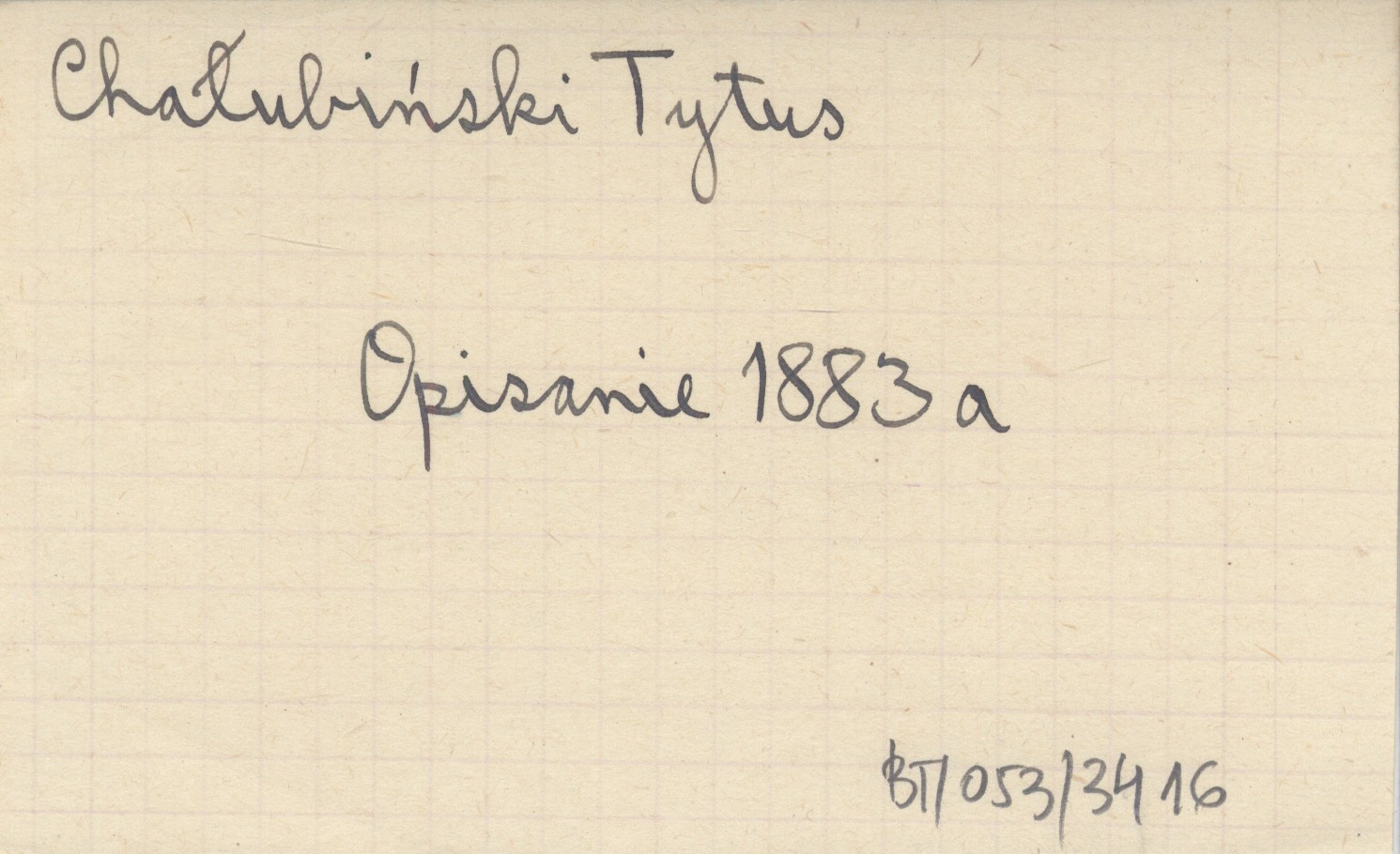 Kraków , [4], 8 s., okł. (?), 25x17 cm. Na [3] s. odbitki jest dodana dedykacja dla Tytusa Chałubińskiego. Odbitka z: Opisanie 1883. Opisanie 1883