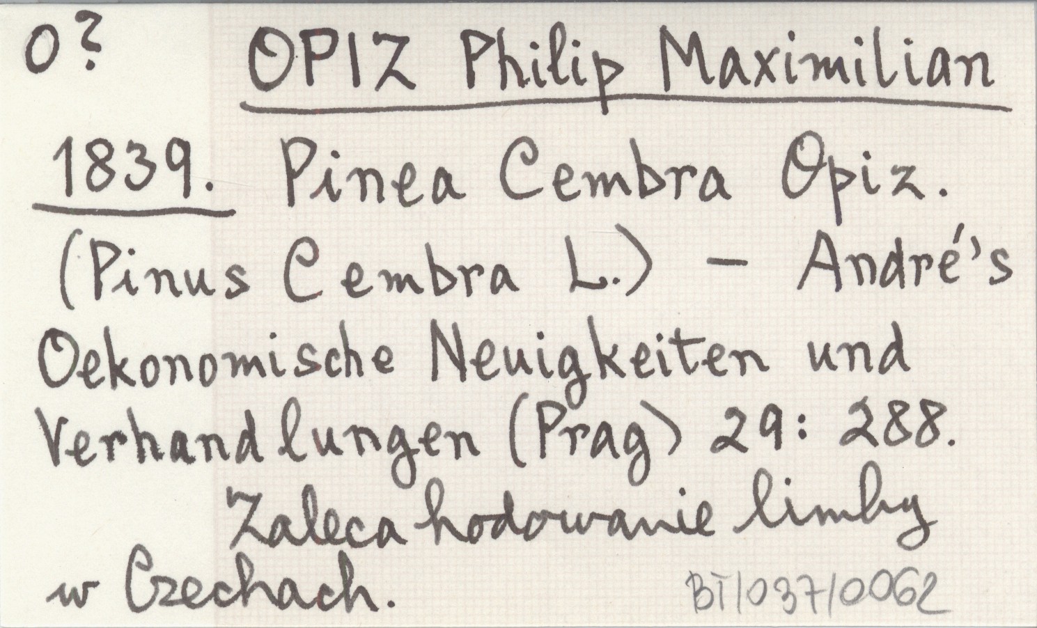 OPIZ Philip Maximilian 1839 Pinea Cembra Opis. (Pinus Cembra L.).