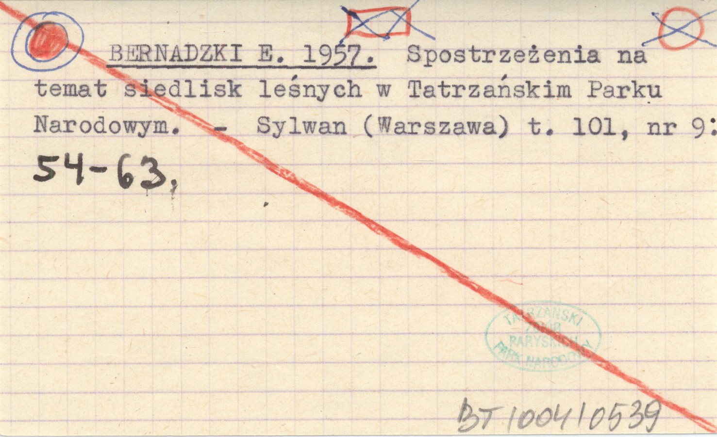 BERNADZKI E. 1957 Spostrzeżenia na temat siedlisk leśnych w Tatrzańskim Parku Narodowym.
