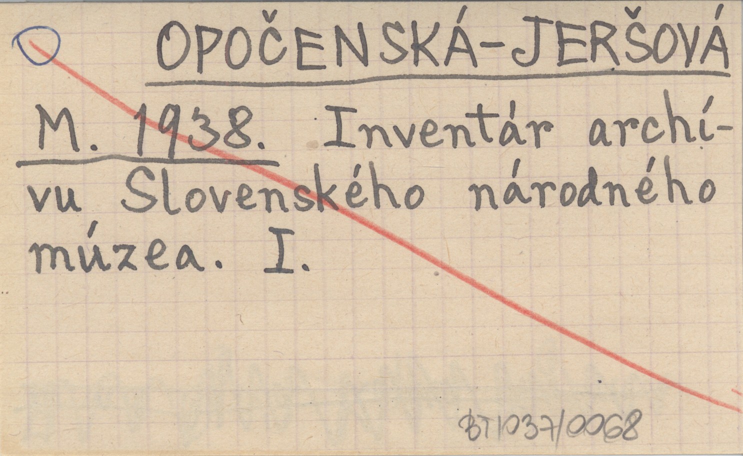 OPOČENSKÁ-JERŠOVÁ M. 1938 Inventár archívu Slovenského národného múzea. I.