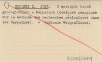 OPOLSKI Z. 1925 Z metodyki badań geologicznych w Karpatach (Quelques remarques sur la methode des recherches géologiques dans les Carpathes).
