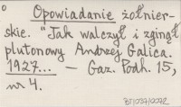 Opowiadanie żołnierskie. "Jak walczył i zginął plutonowy Andrzej Galica. 1927...