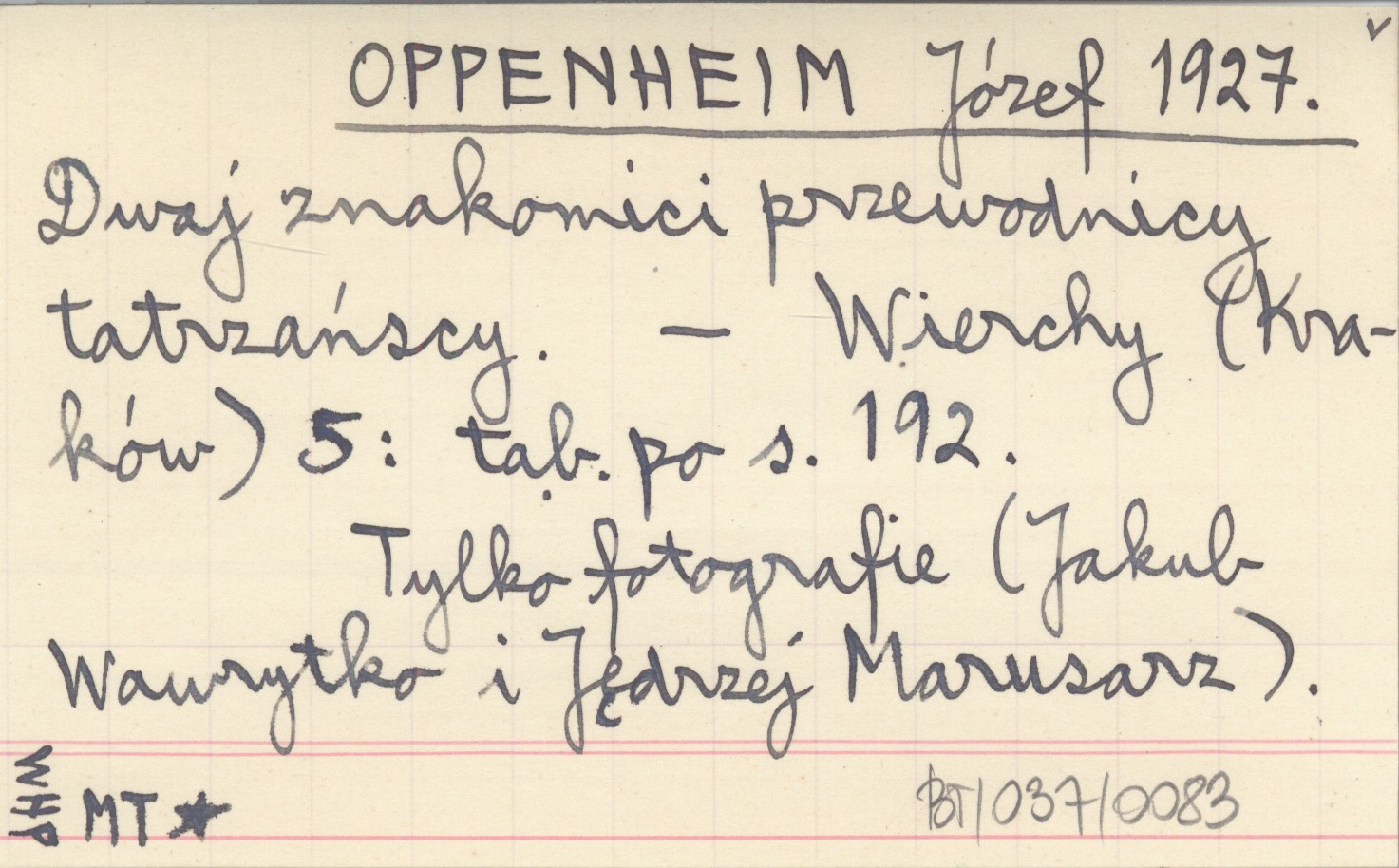 OPPENHEIM Józef 1927 Dwaj znakomici przewodnicy tatrzańscy.