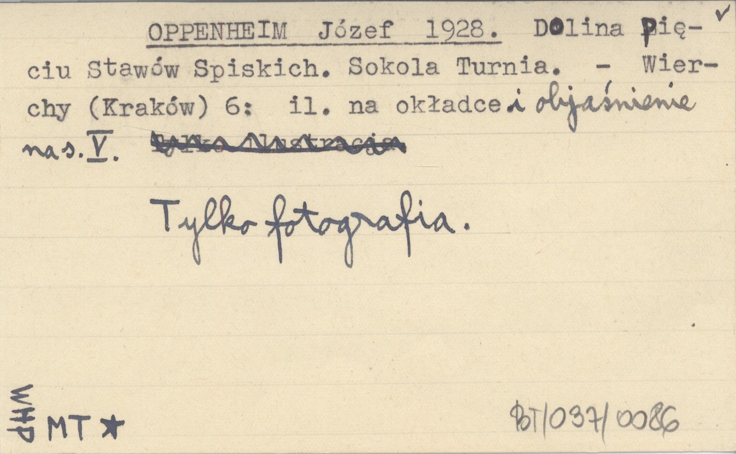 OPPENHEIM Józef 1928 Dolina Pięciu Stawów Spiskich. Sokola Turnia.