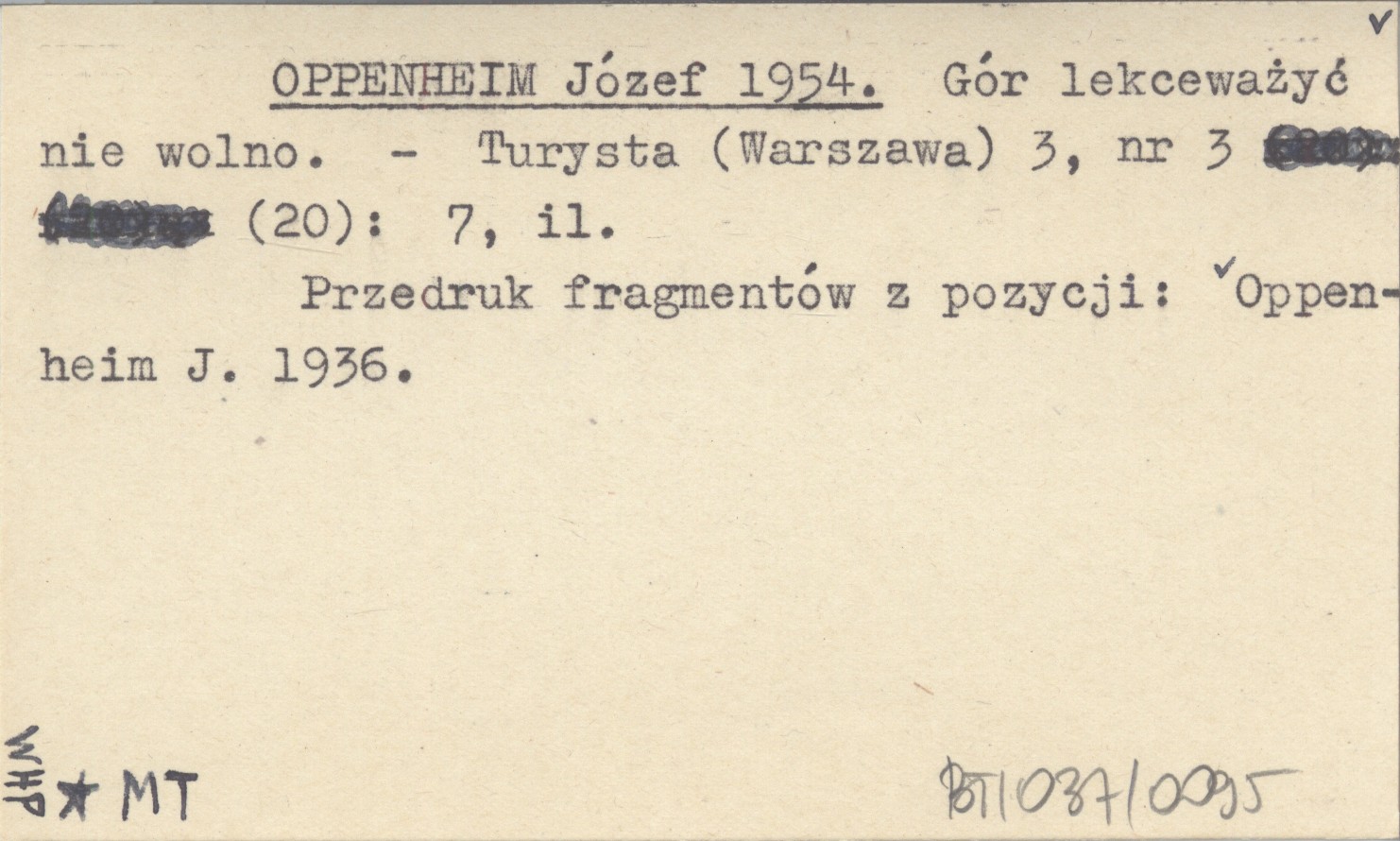 Turysta (Warszawa) , 3, nr 3 (20): 7, il. Przedruk fragmentów z pozycji: Oppenheim J. 1936. Oppenheim J. 1936