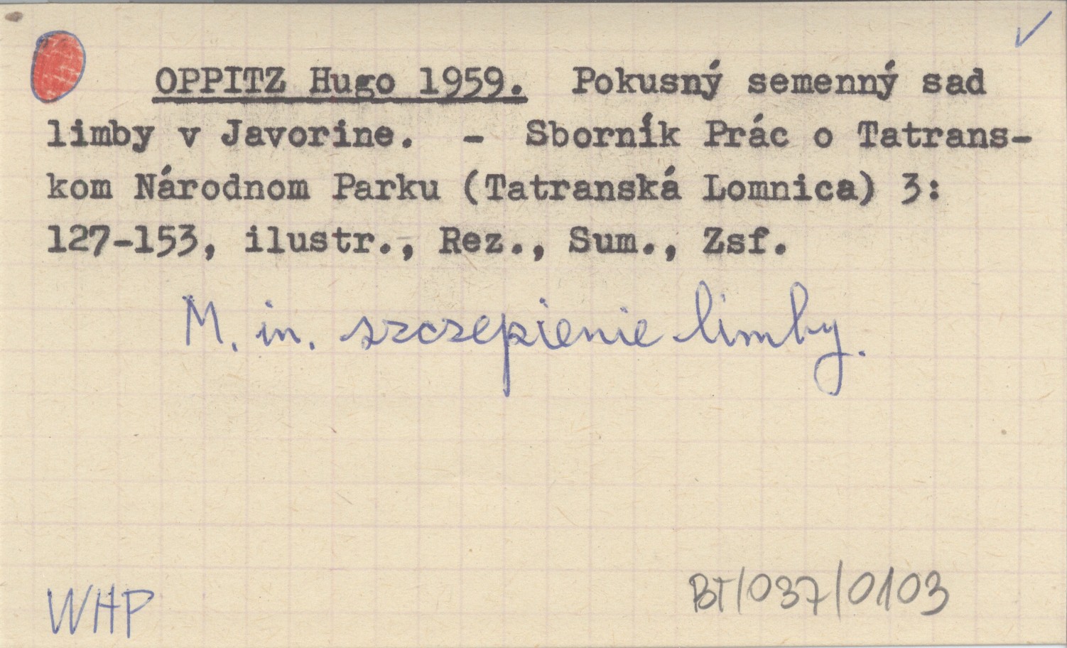 Sborník Prác o Tatranskom Národnom Parku (Tatranská Lomnica) , 3: 127-153, il., Rez., Sum., Zsf. M. in. szczepienie limby.