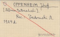 OPPENHEIMER J. 1926 Zur Geologie der inneren Klippenzone der Karpathen.
