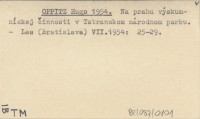 OPPITZ Hugo 1954 Na prahu výskumníckej činnosti v Tatranskom národnom parku.