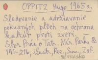 OPPITZ Hugo 1965 a Sledovanie a udrľiavanie pokusných plôch na ochranu kultúr proti zveri.