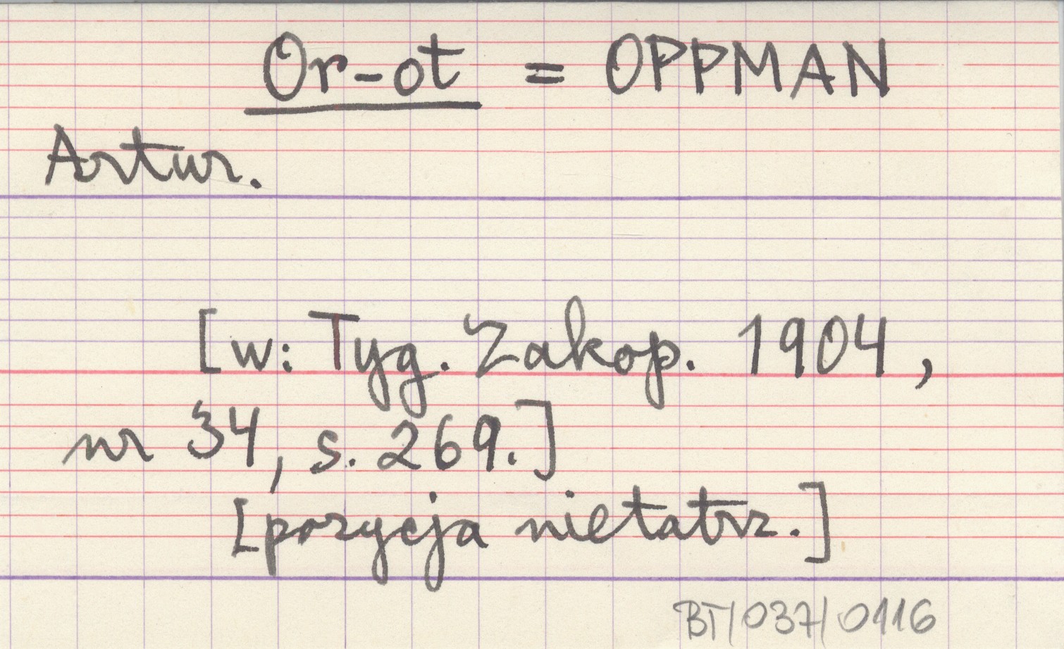 Or-ot OPPMAN Artur [Tygodnik Zakopiański 1904, nr 34: 269]. [Pozycja nietatrzańska].