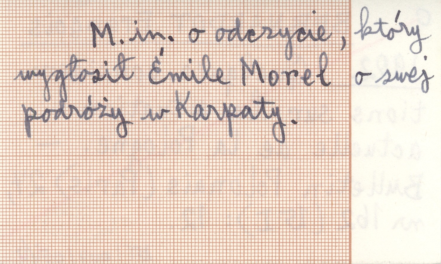 Bulletin Polonais (Paris) , 27, nr 162 (15 I): 12. M.in. o odczycie, który wygłosił Émile Morel o swej podróży w Karpaty.