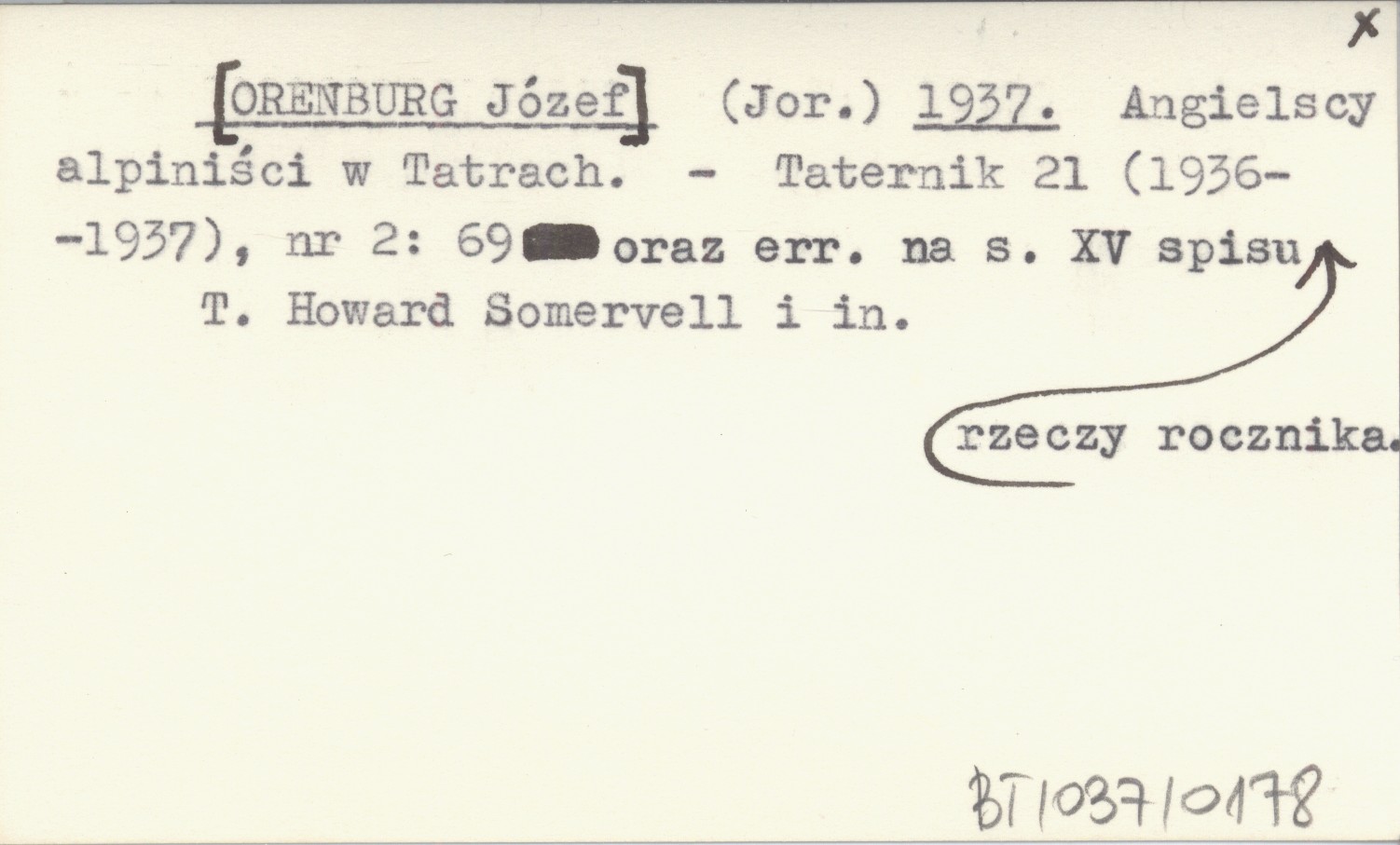 Taternik, 21 (1936-1937), nr 2: 69, err. (s. XV spisu rzeczy r.). T. Howard Somervell i in.