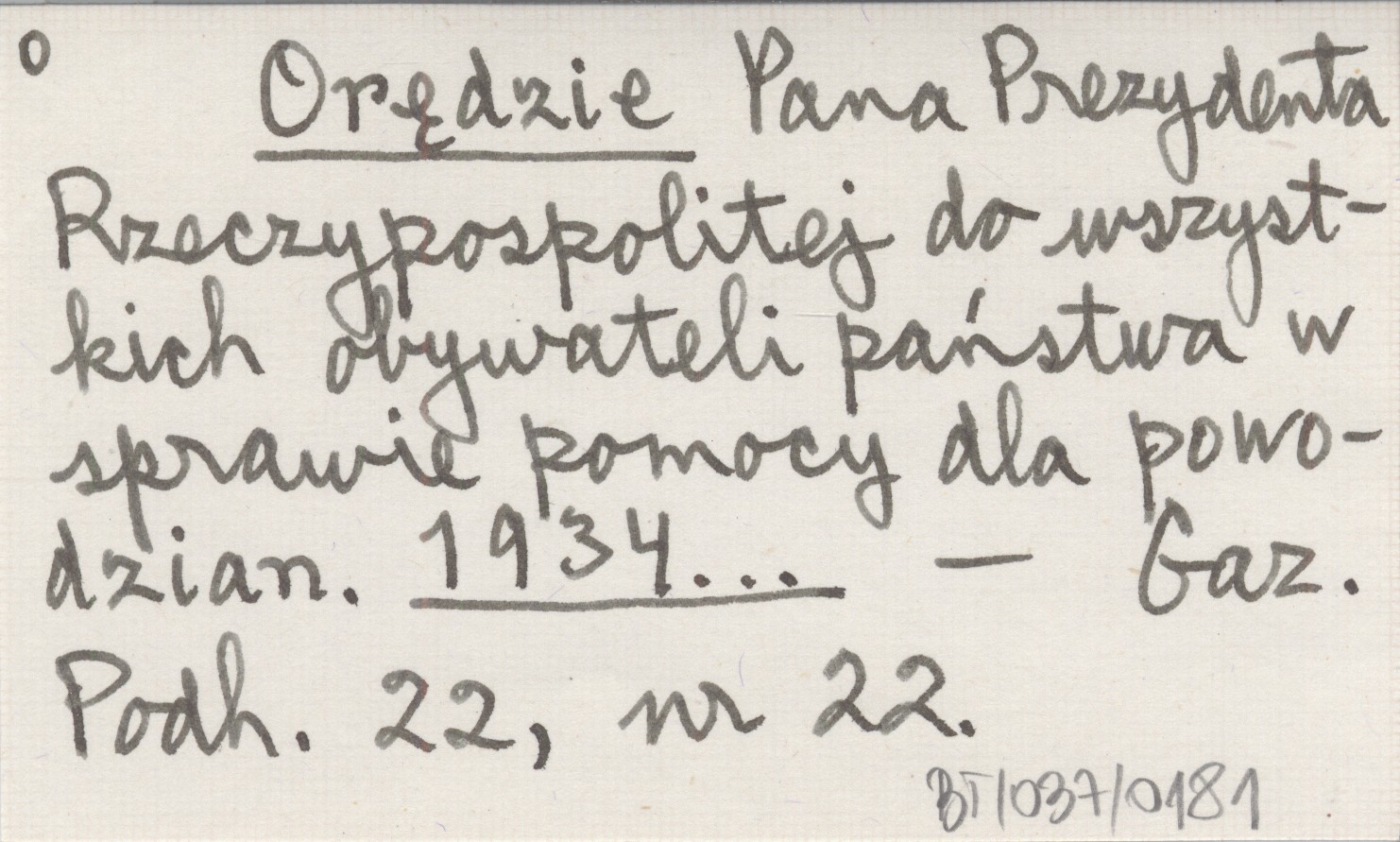Orędzie Pana Prezydenta Rzeczypospolitej do wszystkich obywateli państwa w sprawie pomocy dla powodzian. 1934...