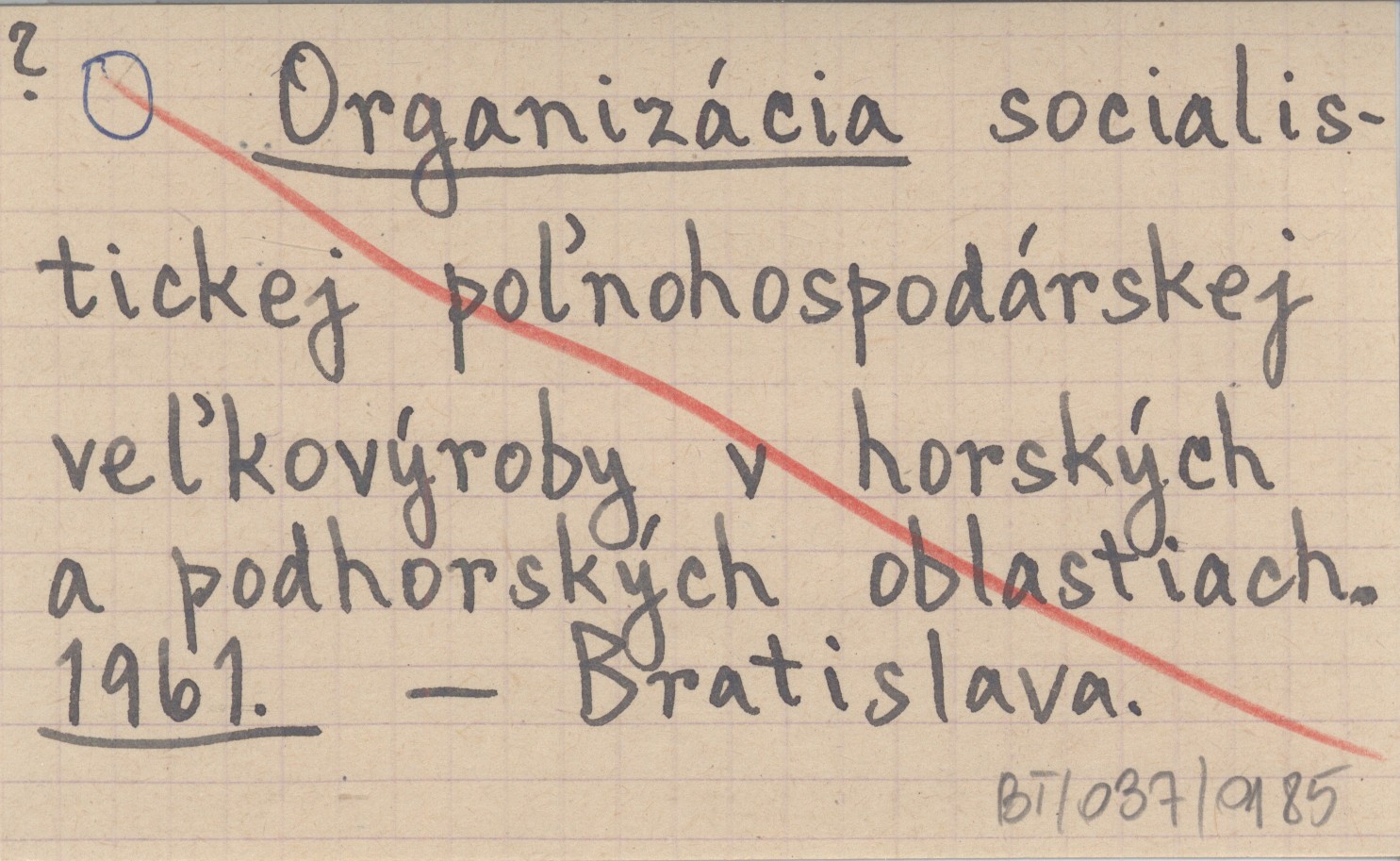 Organizácia socialistickej po”nohospodárskej ve”kovęroby v horskęch a podhorskęch oblastiach. 1961