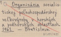 Organizácia socialistickej po”nohospodárskej ve”kovęroby v horskęch a podhorskęch oblastiach. 1961