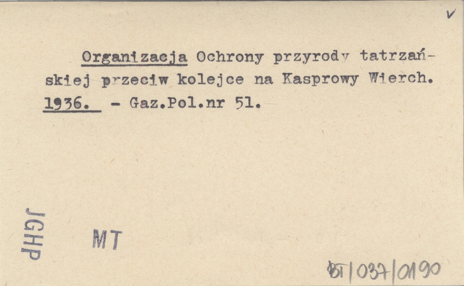 Organizacja Ochrony przyrody tatrzańskiej przeciw kolejce na Kasprowy Wierch. 1936