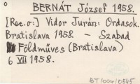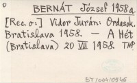 BERNÁT József 1958 a Vidor Jurán: Ordasok. Bratislava 1958.