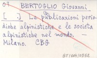 BERTOGLIO Giovanni Le pubblicazioni periodiche alpinistiche e le societa alpinistiche nel mondo.