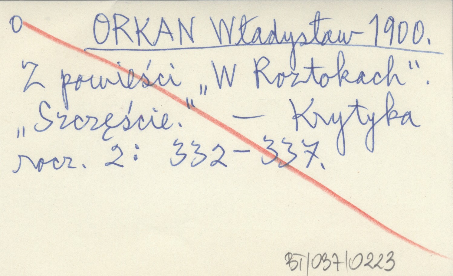 ORKAN Władysław 1900 Z powieści "W Roztokach". "Szczęście".