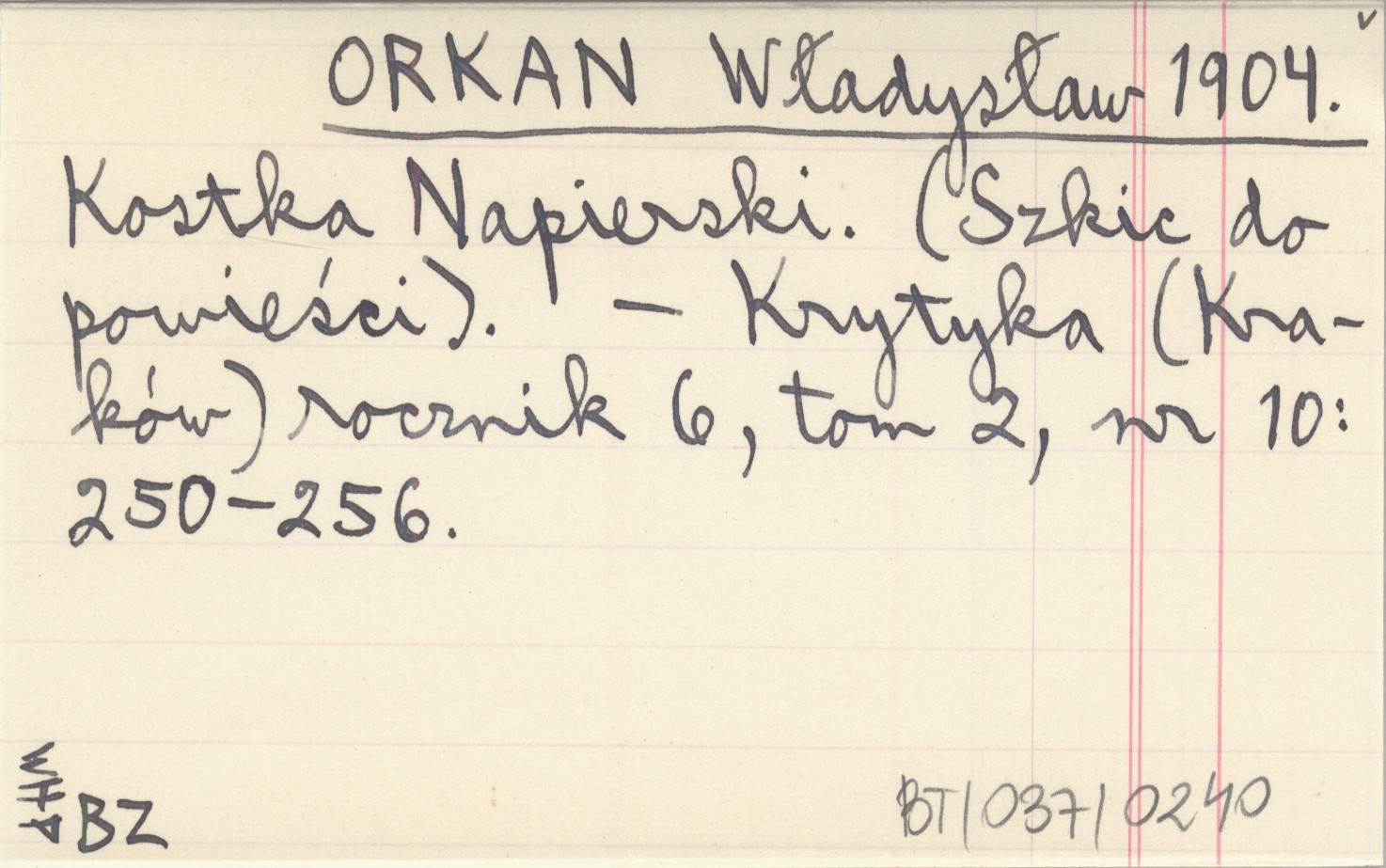 ORKAN Władysław 1904 Kostka Napierski. (Szkic do powieści).