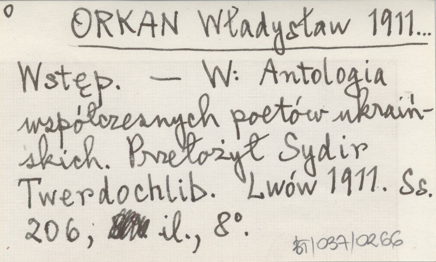 Antologia współczesnych poetów ukraińskich. Przełożył Sydir Twerdochlib. Lwów 1911. 206 s., il., 8°.