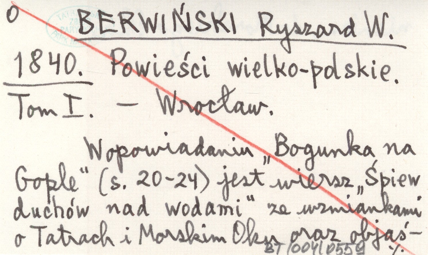 Wrocław , Tom I. W opowiadaniu "Bogunka na Gople" (s. 20-24) jest wiersz "Śpiew duchów nad wodami" ze wzmiankami o Tatrach i Morskim Oku oraz objaśnieniem do Morskiego Oka.