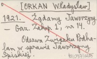 [ORKAN Władysław] 1921 Żądamy Jaworzyny.