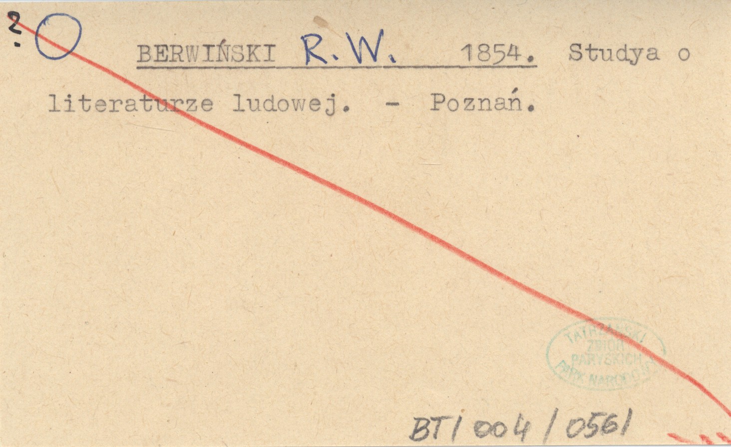 BERWIŃSKI R. W. 1854 Studya o literaturze ludowej.