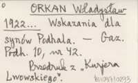 ORKAN Władysław 1922... Wskazania dla synów Podhala.