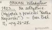 ORKAN Władysław 1923... Na sołtystwie. (Wyjątek z powieści "Kostka Napierski".).