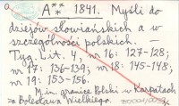 A *** 1841 Myśli do dziejów słowiańskich a w szczególności polskich.