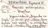 BERWIŃSKI R. W. 1854 Studya o literaturze ludowej.