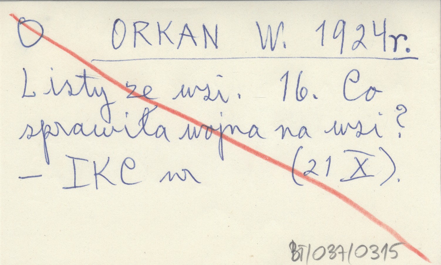 ORKAN W. 1924 r Listy ze wsi. 16. Co sprawiła wojna na wsi?