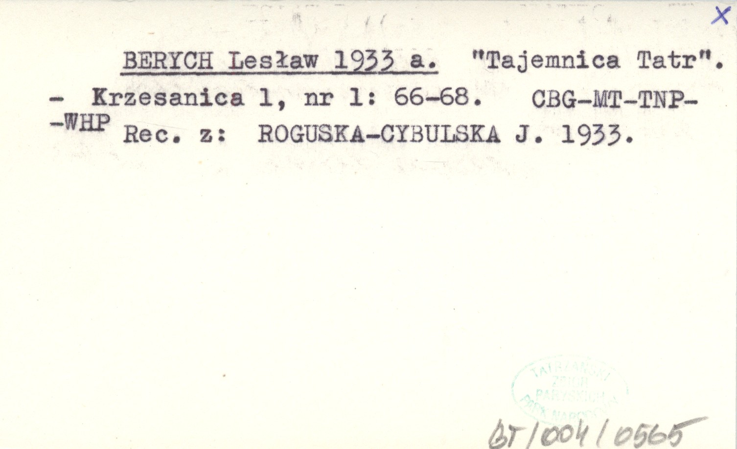 Krzesanica, 1, nr 1: 66-68. REC: Z: ROGUSKA-CYBULSKA J. 1933.