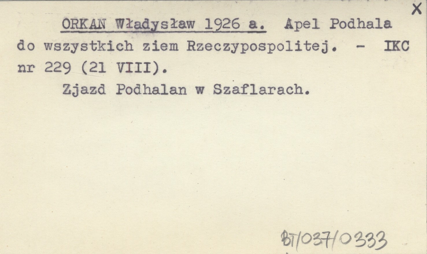 ORKAN Władysław 1926 a Apel Podhala do wszystkich ziem Rzeczypospolitej.