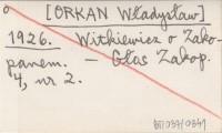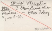 ORKAN Władysław 1926 O Stanisławie Witkiewiczu.