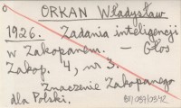 ORKAN Władysław 1926 Zadania inteligencji w Zakopanem.