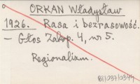 ORKAN Władysław 1926 Rasa i bezrasowość.