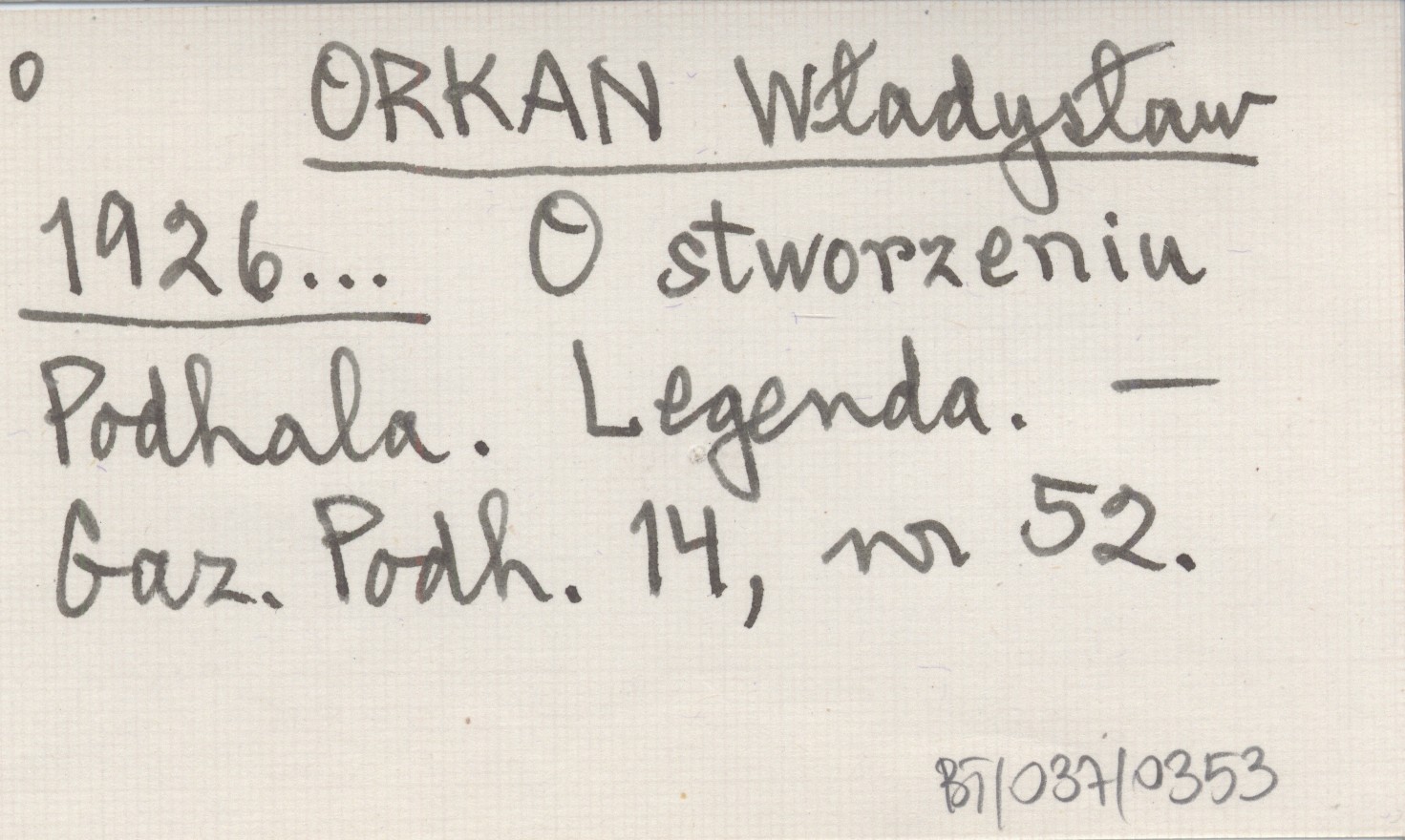 ORKAN Władysław 1926... O stworzeniu Podhala. Legenda.