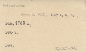 Porazińska J. 1927 (s. 114-118, il.). , Opowiadanie. Przedrukowano w: Orkan W. 1936 (s. 120-125).