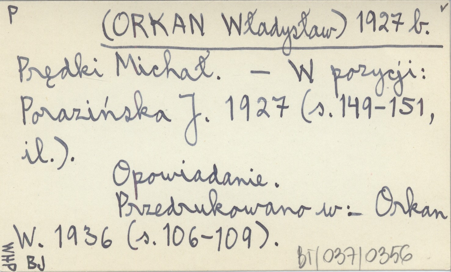 Porazińska J. 1927 (s. 149-151, il.). , Opowiadanie. Przedrukowano w: Orkan W. 1936 (s. 106-109).