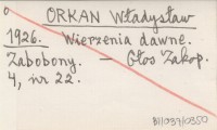 ORKAN Władysław 1926... O stworzeniu Podhala. Legenda.