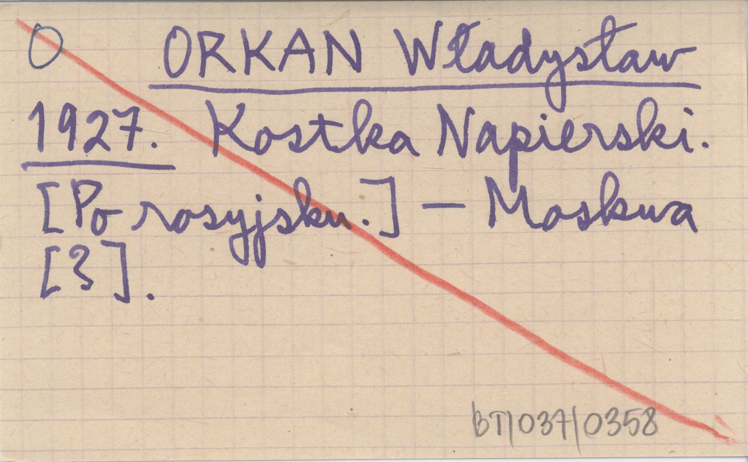 ORKAN Władysław 1927 Kostka Napierski. [Po rosyjsku].