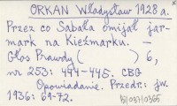 ORKAN Władysław 1928 a Przez co Sabała omijał jarmark na Kieźmarku.