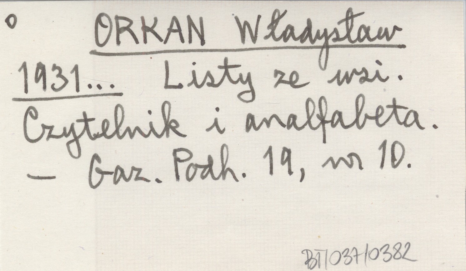 ORKAN Władysław 1931... Listy ze wsi. Czytelnik i analfabeta.